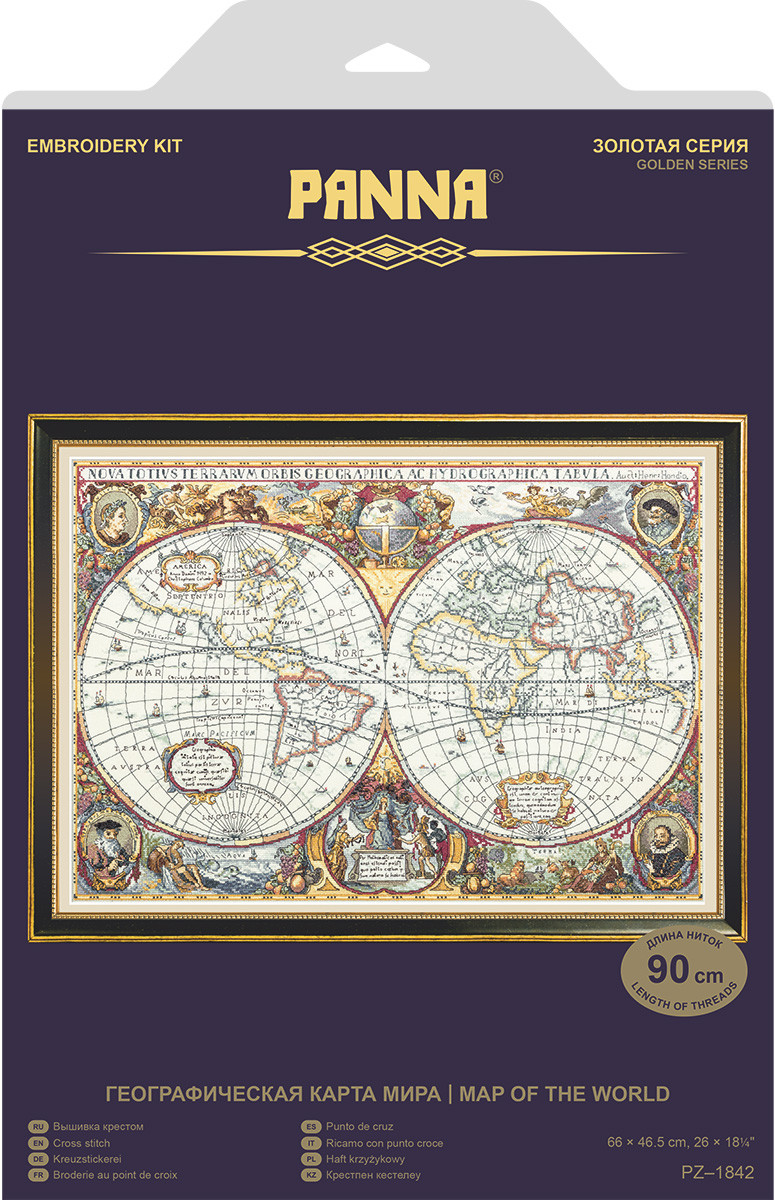 Набор для вышивания " PANNA" " Золотая серия" PZ- 1842 ( ПЗ- 1842 ) " Географическая карта мира"