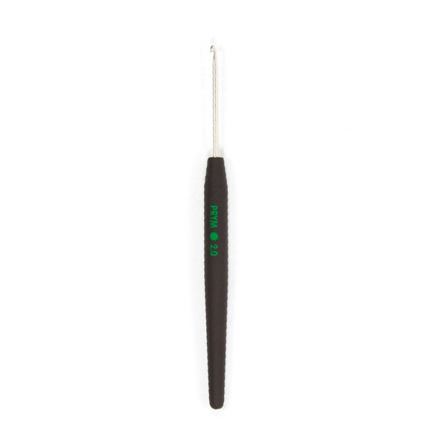 Крючок для вязания с пластиковой ручкой, артикул 195172, ТМ PRYM. С этим высококачественным крючком для шерстяной пряжи вязание шапок, шарфов, сумок, кошельков, покрывал и других различных аксессуаров будет легким и приятным! Мягкая и комфортная ручка приятно лежит в руке и не скользит. Конец ручки сделан под конус, что удобно во время работы. Крючок полностью гладкий и без малейших заусенцев. Канавка на крючке обеспечивает полностью равномерное ведение нити. Кроме того, для быстрого распознавания размер стержня крючка нанесен цветной краской на ручку красивого антрацитового цвета. В упаковке: 1 шт. Диаметр крючка: 2 ммДлина крючка: 14 см. Материал: алюминий, пластикСообщить о неточности в описании