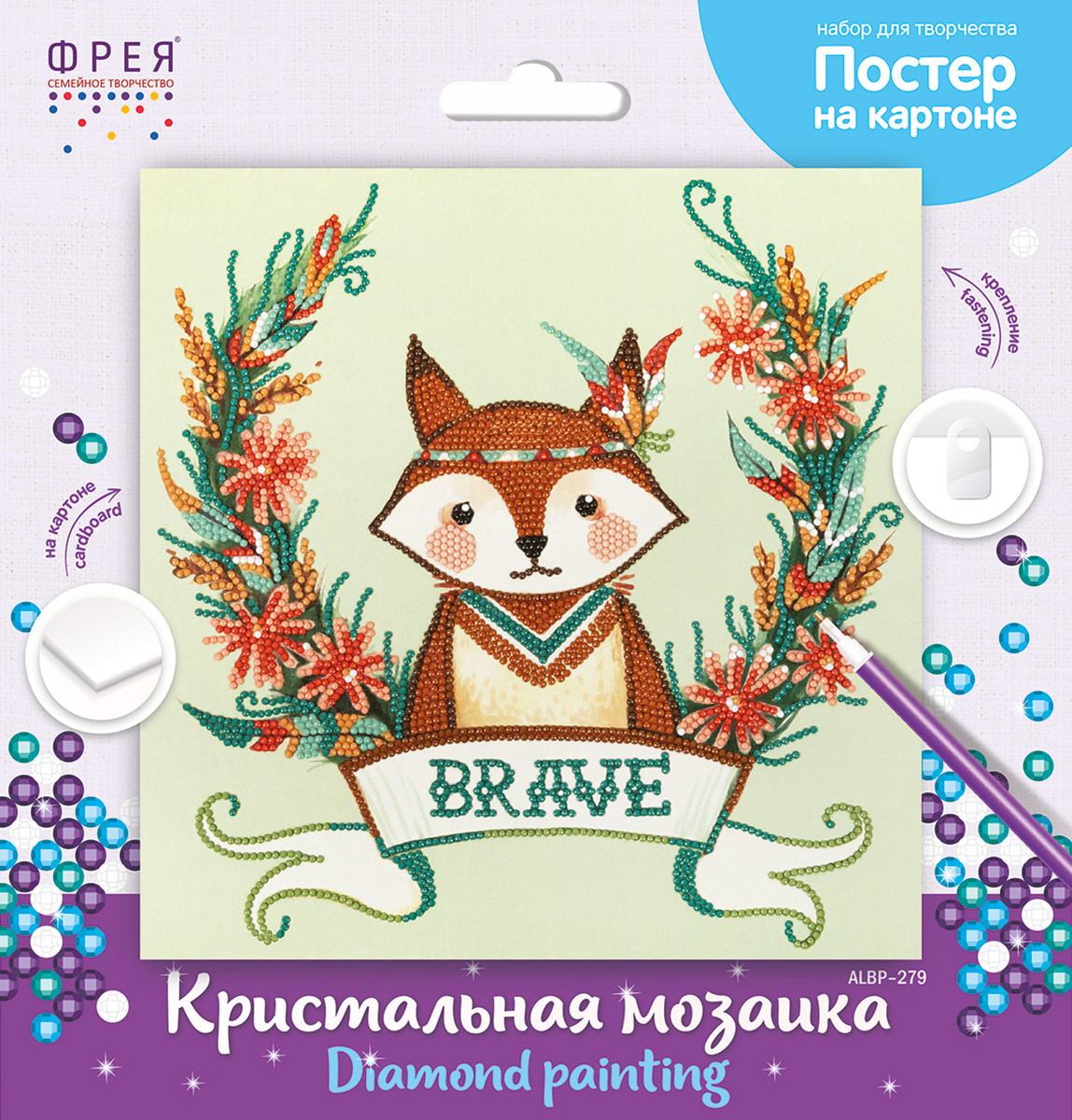 Набор по изготовлению постера на картоне в технике " Кристальная/ алмазная мозаика". Выполнение работы не требует специальных навыков, выкладывать постер очень легко и быстро. Круглые стразы наклеиваются поверх изображения со схемой на уже нанесенный клеевой слой. Основа из плотного картона не деформируется и не образует заломов. Готовый постер не нуждается в раме, его сразу можно повесить на стену, при помощи специального крепления, входящего в набор, или поставить на полку. Картина станет ярким и оригинальным украшением интерьера! В набор ТМ ФРЕЯ " Кристальная мозаика" входит: - цветная схема, напечатанная на картоне, с клеевым слоем и защитной пленкой,- круглые стразы: 12 цветов, с запасом 20%,- стилус и восковая пластина, - лоток, - крепление для подвешивания картины на стену. Тип выкладки: частичная. Уровень сложности: 2 из 3. Размер готового изделия: 30х30 см. Размер упаковки: 32х34х1. 5 см. Рекомендуемый возраст: от 8 лет. Сообщить о неточности в описании