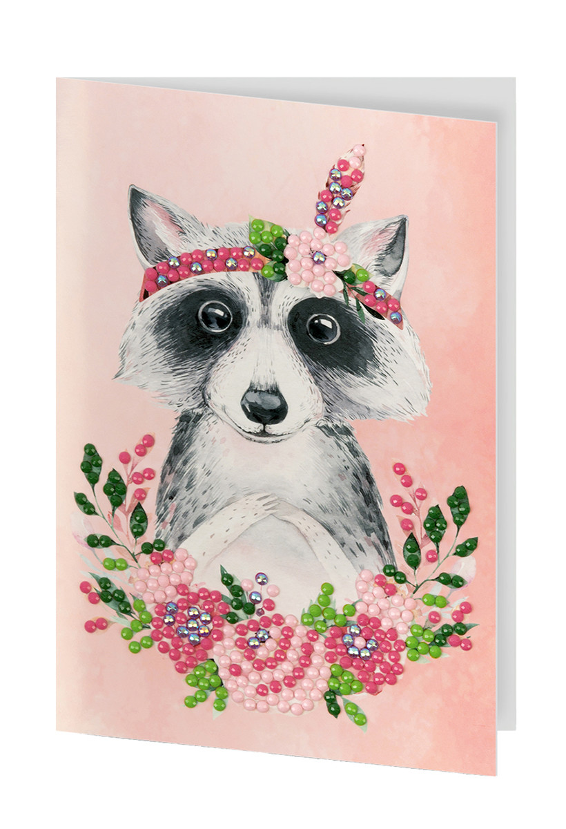 Кристальная ( алмазная) мозаика " ФРЕЯ" ALVO- 602 открытка " Енотик с цветами" 10. 5 х 14. 8 см