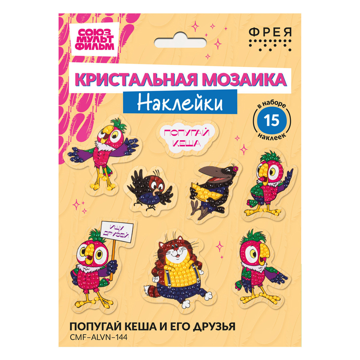 Кристальная ( алмазная) мозаика " ФРЕЯ" CMF- ALVN- 144 наклейки " Попугай Кеша и его друзья" 19. 5 х 14 см