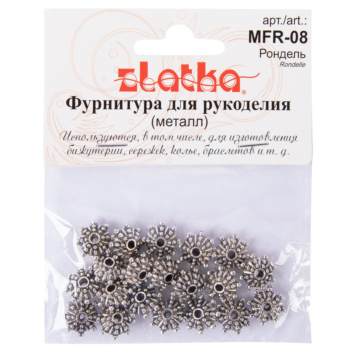 Рондель " Zlatka" MFR- 08 - небольшие декоративные бусины, используются для разделения бусин в украшении например, один вид от другого или в качестве самостоятельного декоративного элемента. Диаметр: 1, 1 см. Состав: 100% сталь. Использование качественной фурнитуры играет очень важную роль при изготовлении бижутерии. От правильного выбора подвески, коннектора, замка или любой другой связующей части зависит целостность готового изделия. Сообщить о неточности в описании
