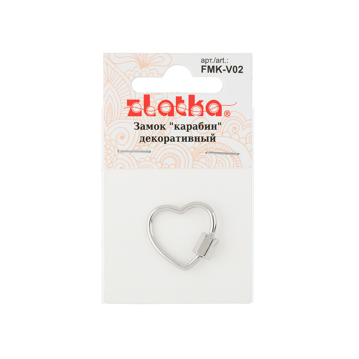 " Zlatka" Замок " карабин" декоративный " сердце" FMK- V02 18 х 19 мм 1 шт №01 под серебро